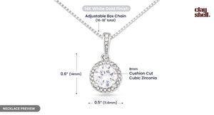 - Showcases an 8mm cushion-cut cubic zirconia center crystal for brilliant shine.