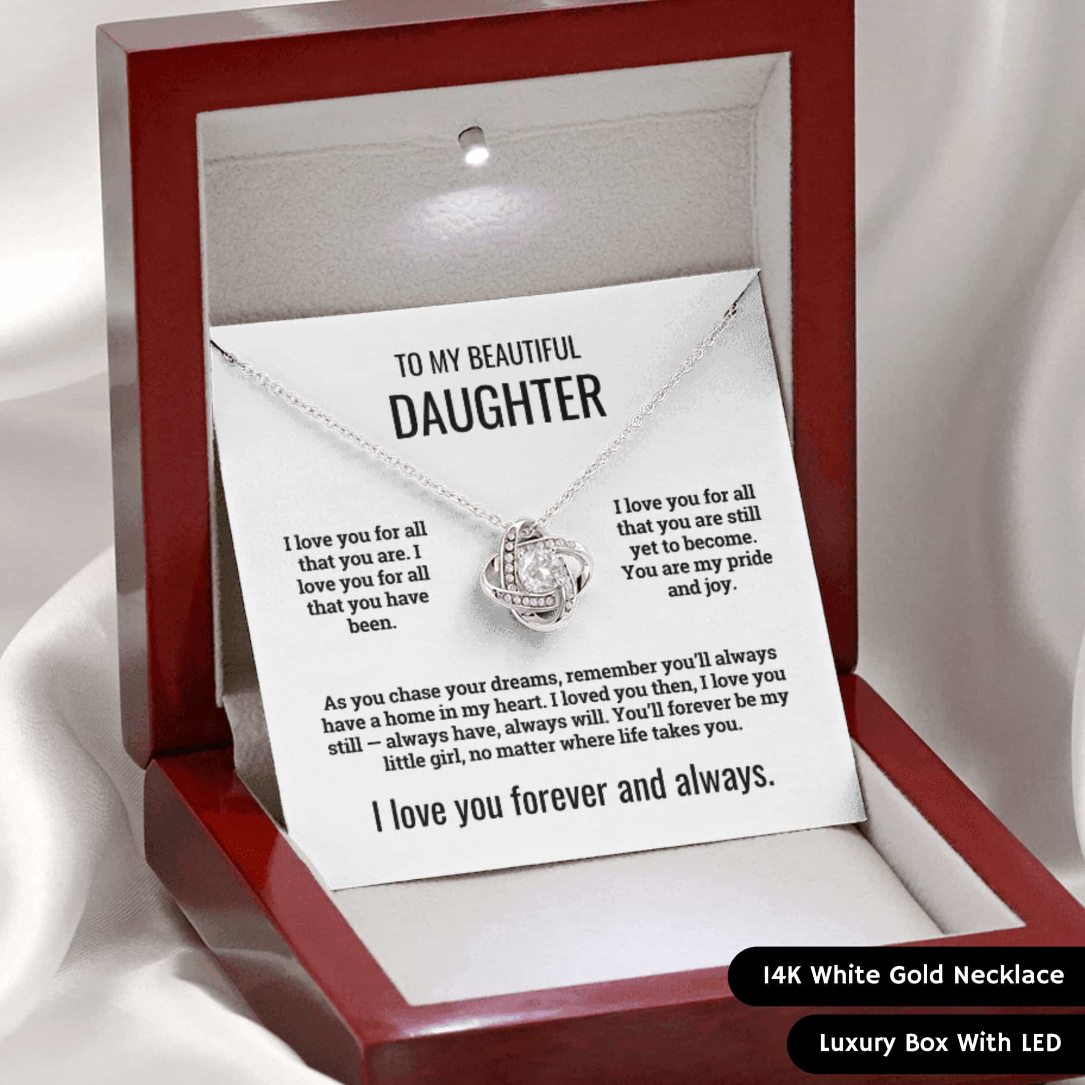 Imagine her opening the elegant box, the soft glow reflecting off a necklace that captures your love perfectly. Her eyes light up, her smile says it all. In that moment, she feels every ounce of your love and the pride you carry for her.