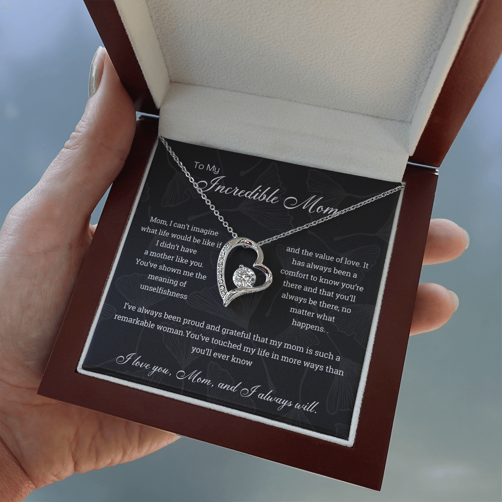 Imagine her opening the elegant box, the soft glow reflecting off a necklace that captures your love perfectly. Her eyes light up, her smile says it all. In that moment, she feels every ounce of your care and gratitude for all she’s done. This isn’t just a gift; it’s an unforgettable memory she’ll cherish forever, a symbol of love she’ll hold close to her heart.